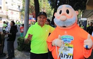"Mis respetos, yo quiero una foto con el Dr. Simi, casi hicimos el mismo tiempo, pero él con la botarga, lo admiro", fue la expresión de Alejandro Arias, uno de los atletas participantes.